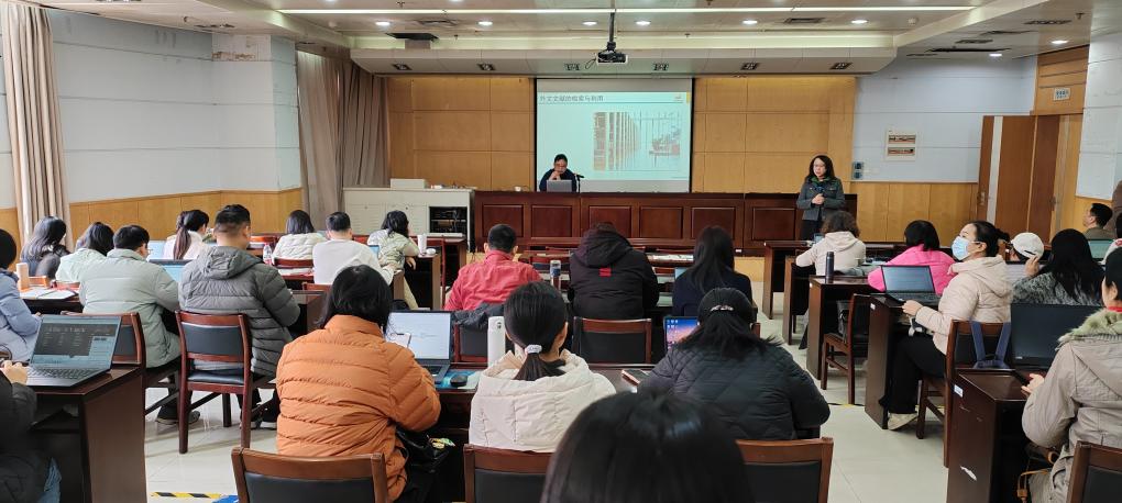外国语学院院长孙雁冰首先作了简短发言,她指出了外文文献的检索与利用对学院科研工作至关重要,强调图书馆与外国语学院联合开展这个培训活动的必要性,希望学院教师珍惜培训机会,提高外文文献的检索与利用技能。