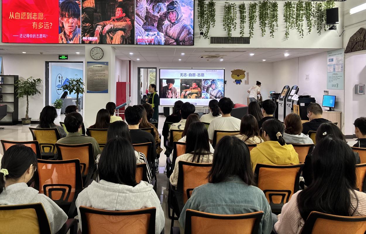 2025 年 10月 16日下午,图书馆党支部组织开展红色电影《长津湖》电影赏析活动,在应天校区图书馆一楼大厅顺利举行。江苏卫视原导演、制片人周蓉老师担任主讲嘉宾,图书馆党支部党员和环境生态学院院青年团员共同参与了此次活动。